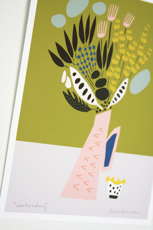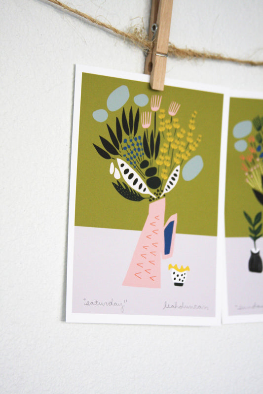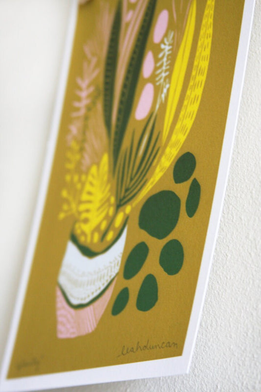 Shop Leah's collection from art prints to textiles including tea towels, silk scarves, and woven blankets. All items are produced ethically and in small batches. Prints are produces in-house or with a local risograph or screen printer.