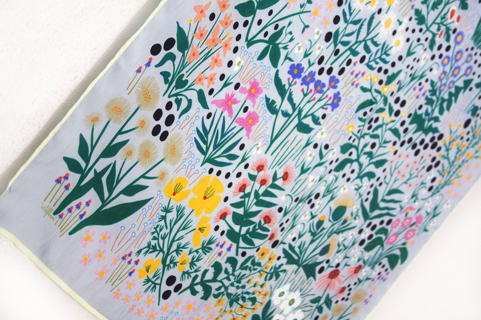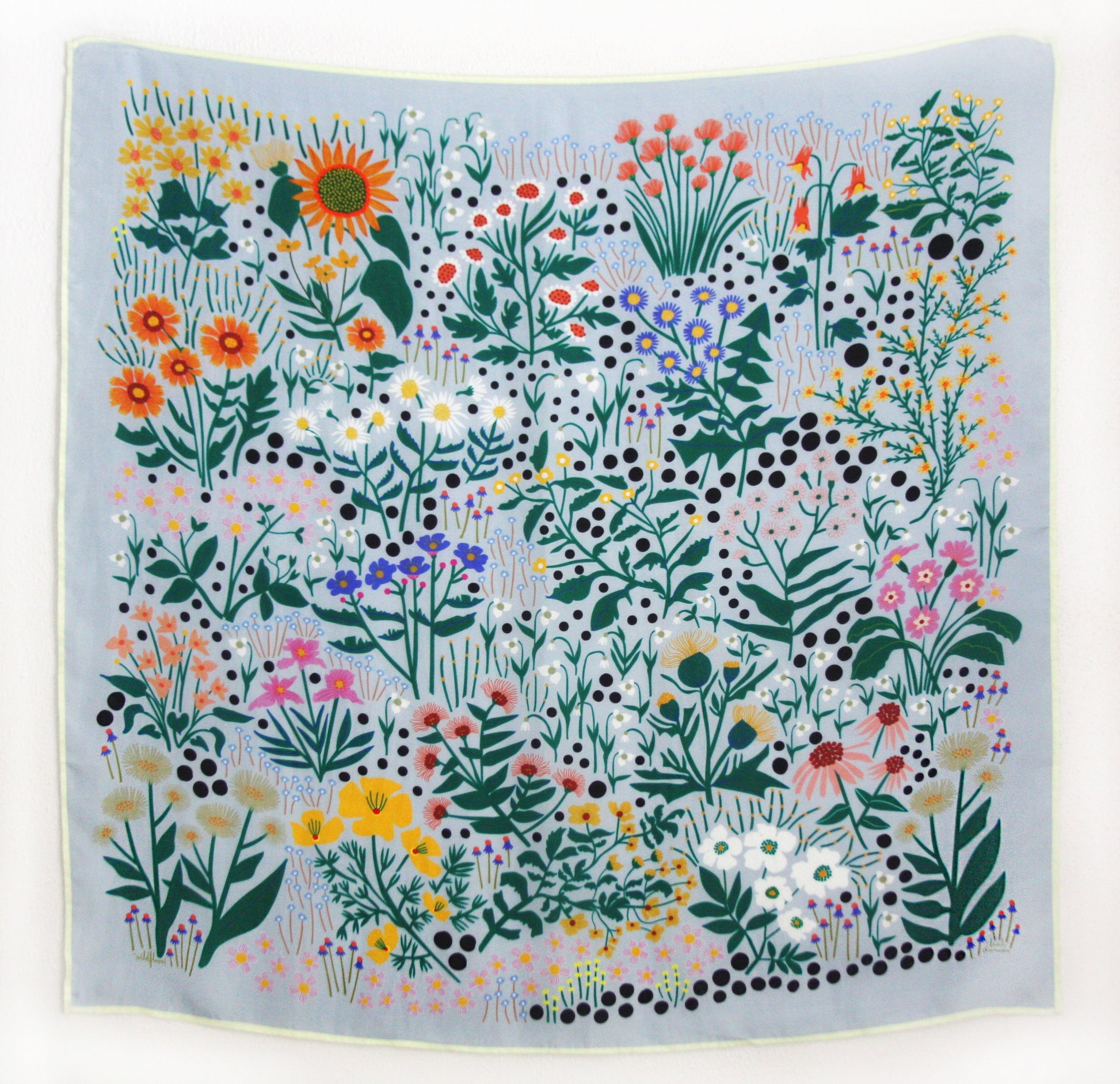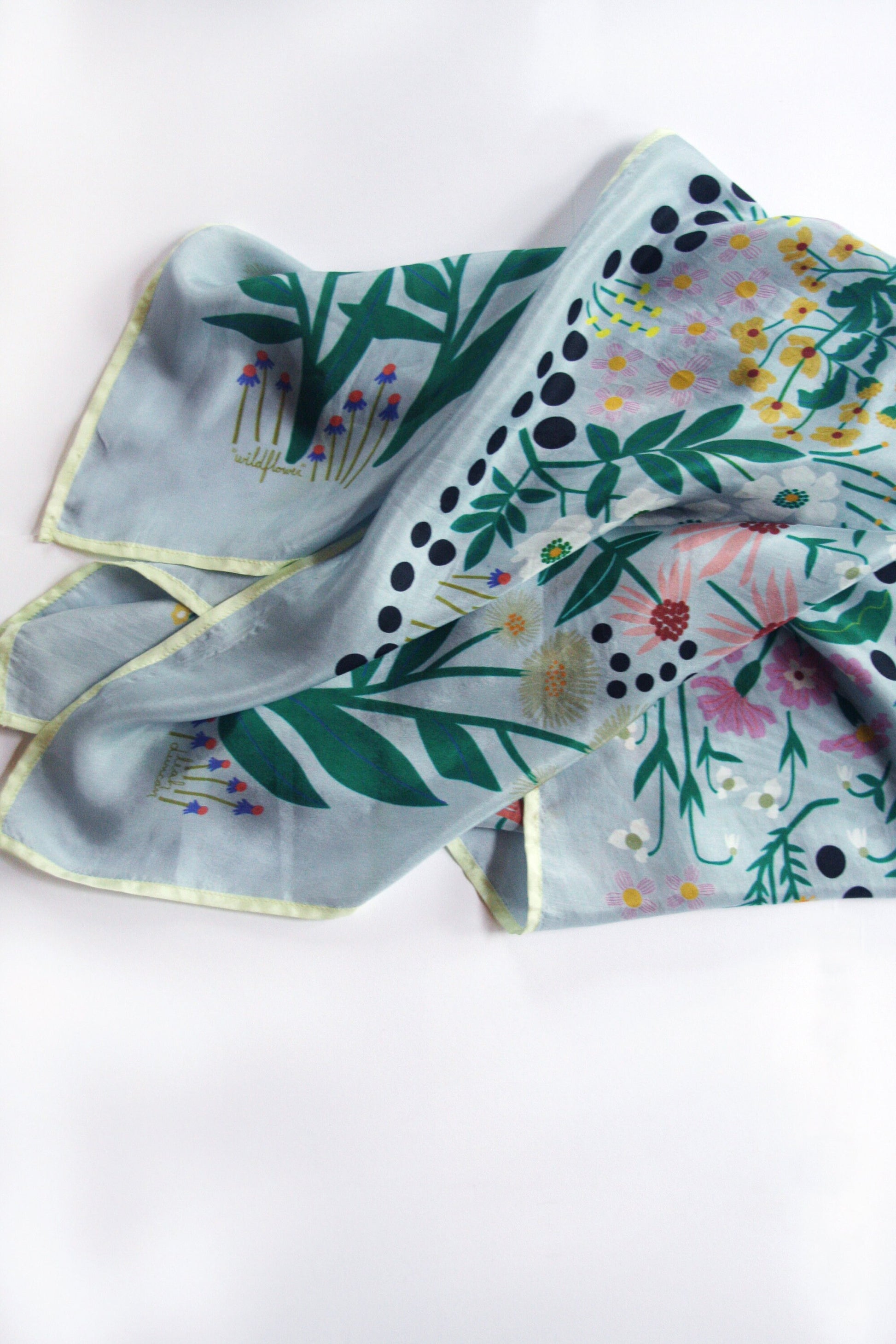 The scarf measures 36" x 36" with a baby hem. Each scarf will be wrapped with tissue paper and shipped carefully in a flat mailer with an info card.