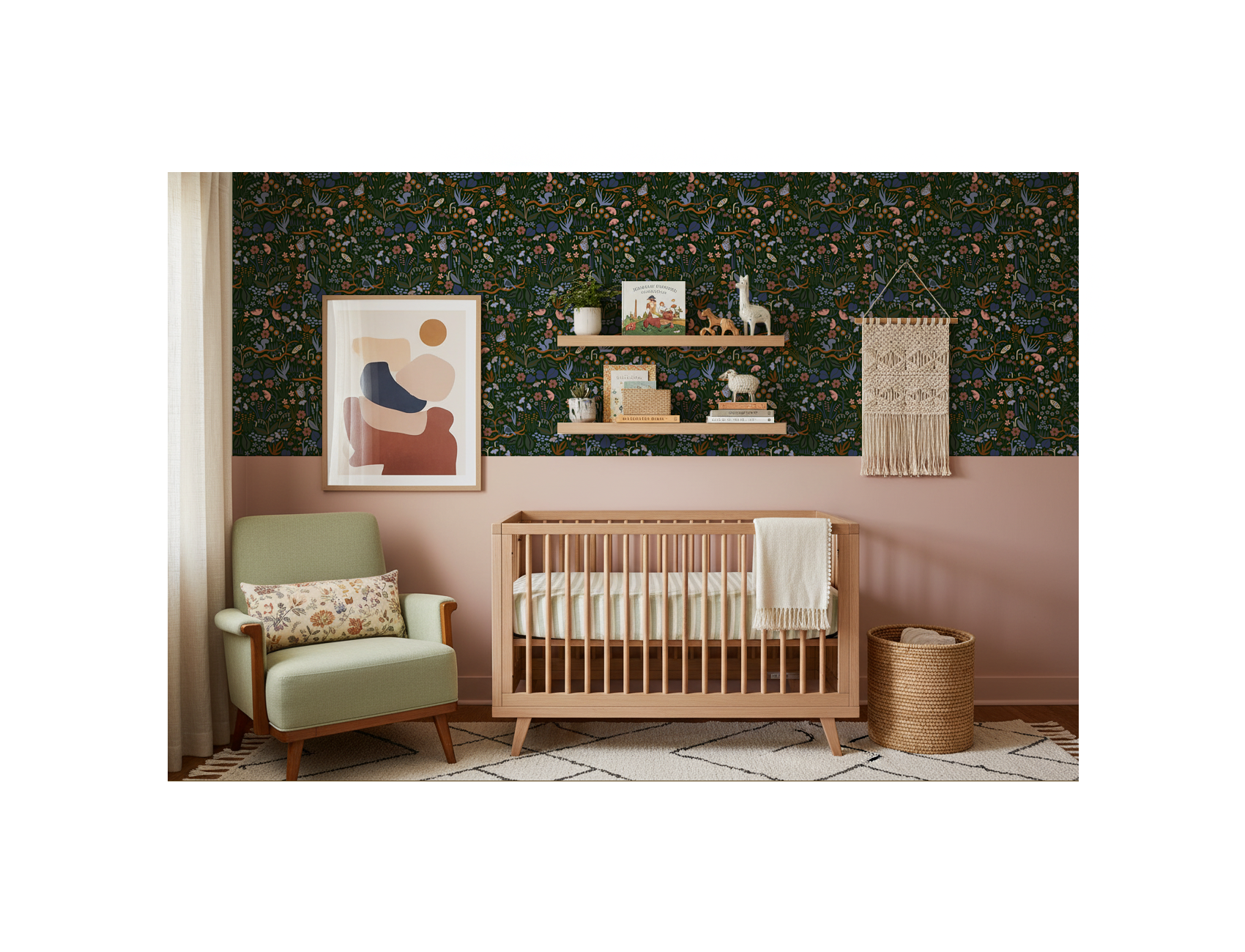 This traditional wallpaper requires paste. Our wallpaper is made from FSC-mix ® certified non-woven paper with textile fibers, is PVC-free, and is printed with UV, GreenGuard-certified inks. It’s durable, eco-friendly, and designed to retain its vibrant colors for years.