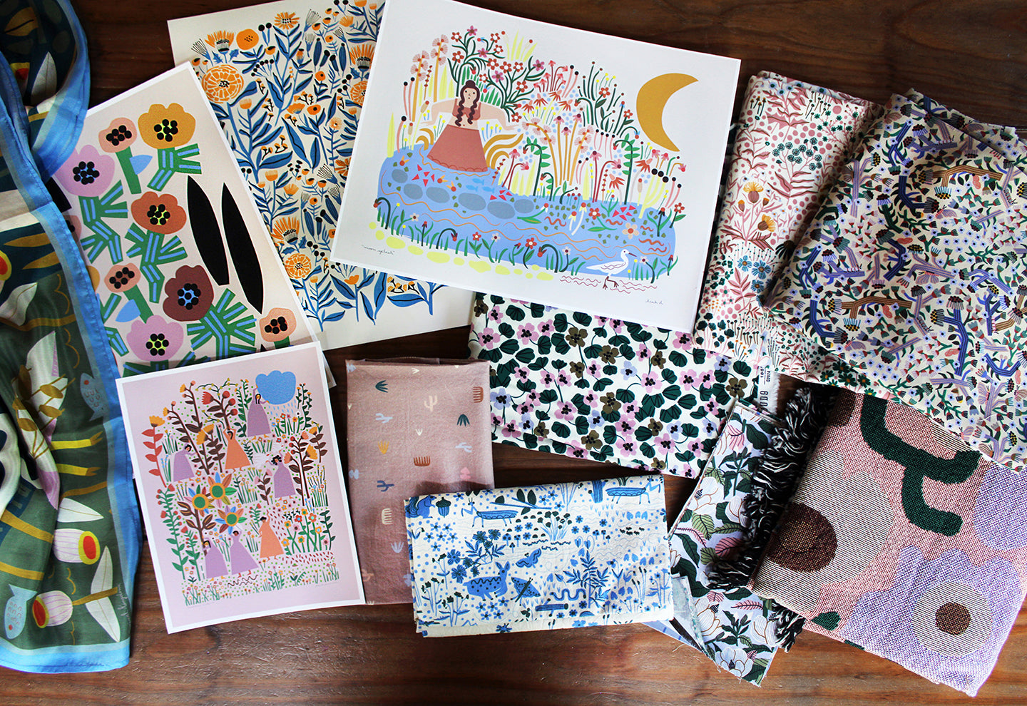 Leah is a self-taught surface pattern and textile designer, illustrator, and artist. Her career began in 2008 with a successful Etsy shop which quickly grew to include shops internationally stocking her work and textiles as well as collaborations with brands featuring her surface patterns and illustrations.