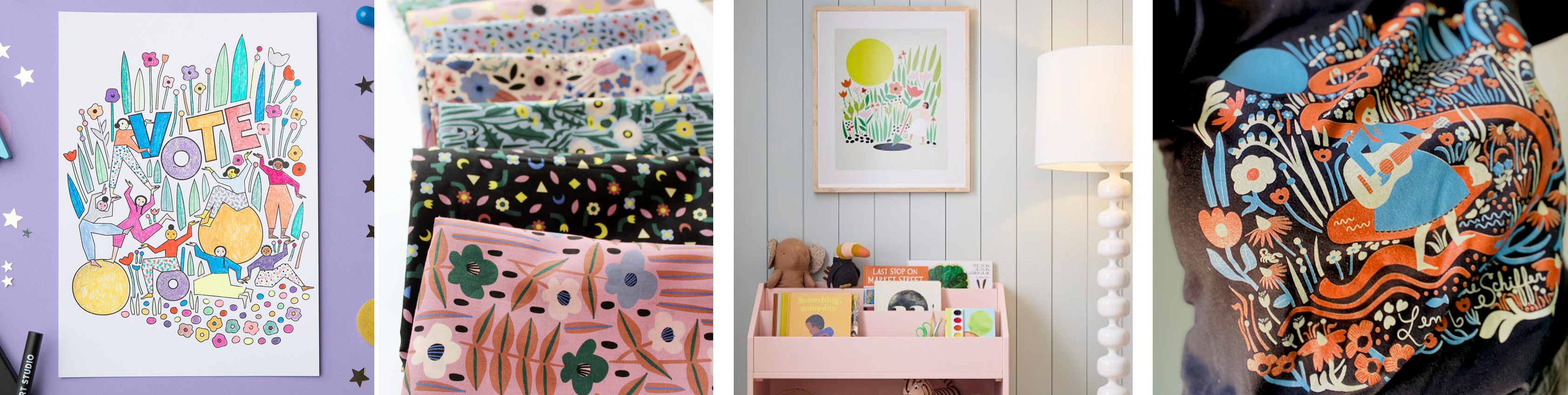 Her work includes surface pattern, textile, and product design as well as illustration. She is known for her earthy modern style which is inspired by her deep love of nature. Internationally recognized, her work is sold all over the world in various forms from fabric to artwork.